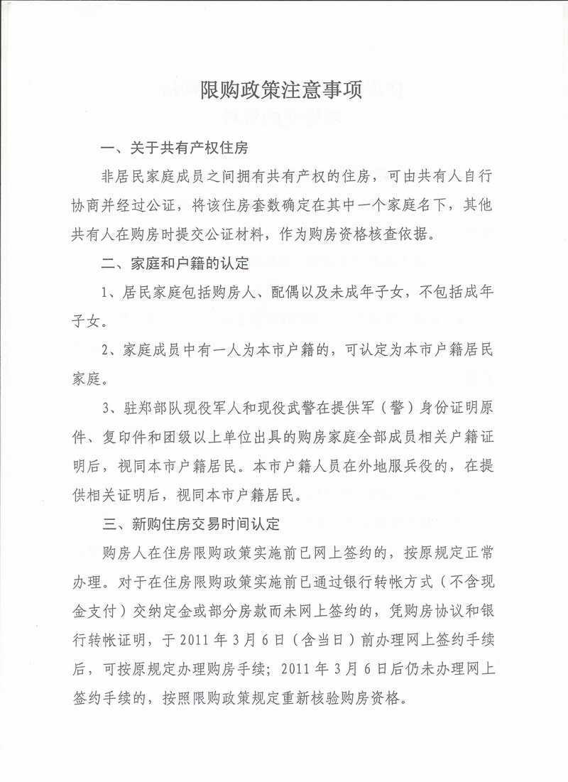 鄭州市住房限購政策注意事項