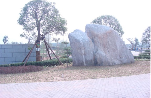 景觀石與桂樹雕塑景觀墻相輔相成