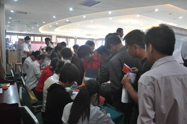 早上8點左右,選房客戶在工作人員的引導下,仔細的斟酌所選房源。