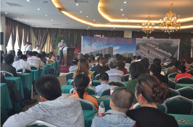 2012年5月13日:晴朗碧空,風和日麗,位于長江路中段縣職高對面的長安明珠應社旗市場的熱切追捧,耀目開盤。晨曦露,天微亮,趙河公園中心島上的萊邦海逸假日酒店三樓會議室就聚集了急切選房的客戶。