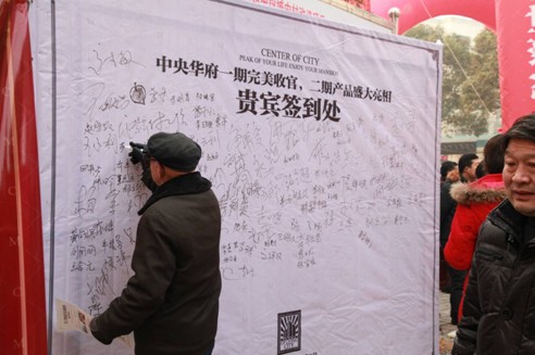 經過公司嚴密的籌劃,127日,中央華府二期在萬眾矚目中盛大亮相。大批客戶不畏嚴寒,大清早就趕到現場,參加此次活動。首先,到場客戶在簽到墻上簽到,并留下自己對中央華府的祝福。活動中,我們還安排了精彩的節目表演,并有電動車、洗衣機、微波爐等大獎相送。現場到訪的客戶,認真聆聽置業顧問的講解。在大家的精心安排下,客戶井然有序的領取彩票,也預祝大家在新的一年來,有個好的兆頭。