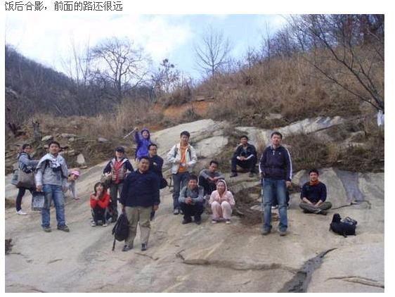 27日一大早,男女老幼就齊集鄭州西南經度秦嶺路、緯度航海路處,互相品鑒著平時見識不到的運動裝束,煞有驢友的介事。哪知一到地方,跟人家驢友一比,發現自己的穿戴裝備都太家家酒了!